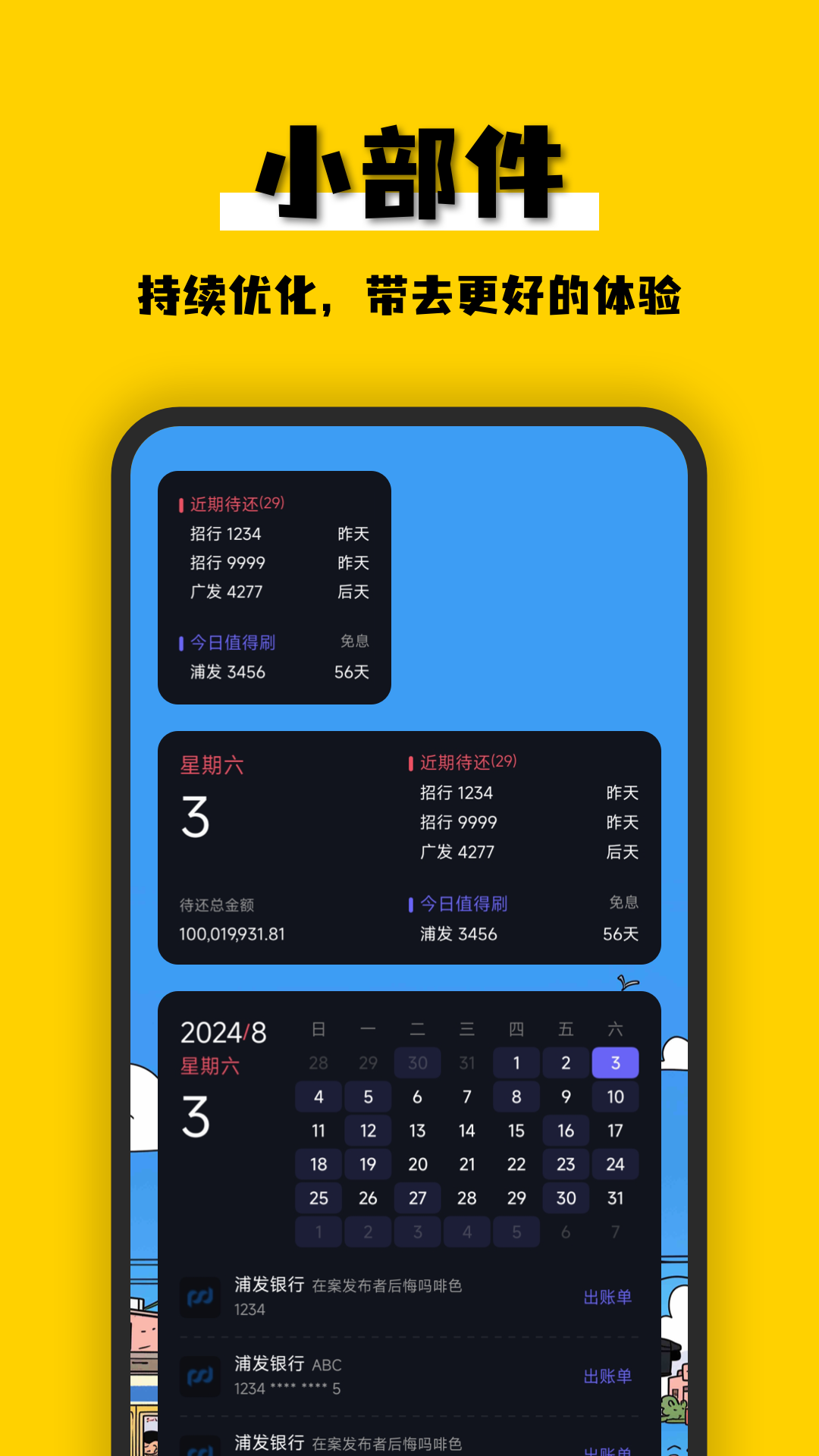 提供了多种小部件服务,并持续更新优化,日常记账更简单。