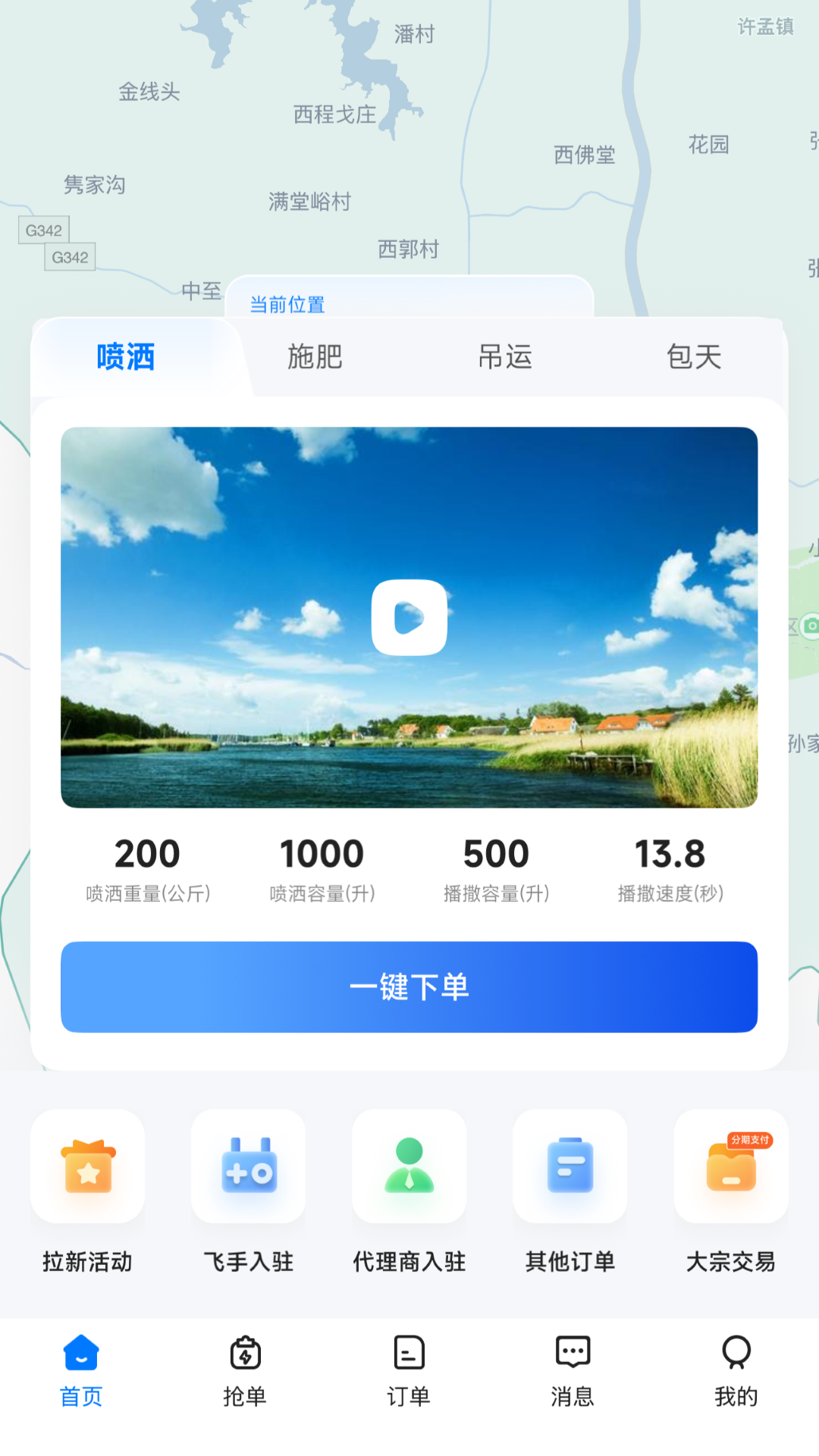 飞手设置服务区域、作业类型、收费标准,接收附近作业订单。支持在线报价、抢单、接单,规划最优作业路线,记录作业轨迹、作业面积、用药用量,作业数据云端保存,便于复盘与结算。