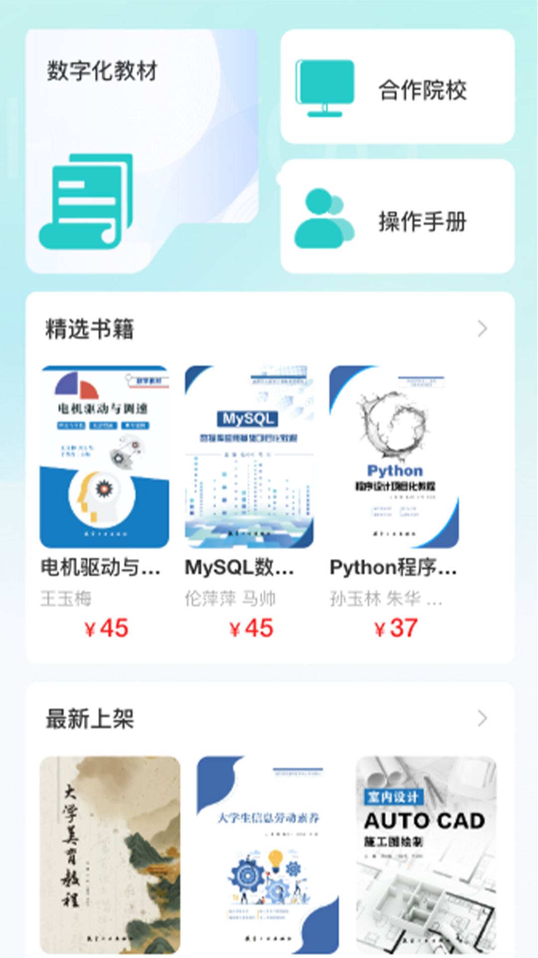 与高等教育出版社、机械工业出版社、电子工业出版社等权威出版社合作,提供正版授权数字教材。涵盖机械、电子、计算机、财经、护理、汽修、烹饪等数十个专业,支持在线阅读、离线下载、笔记标注。