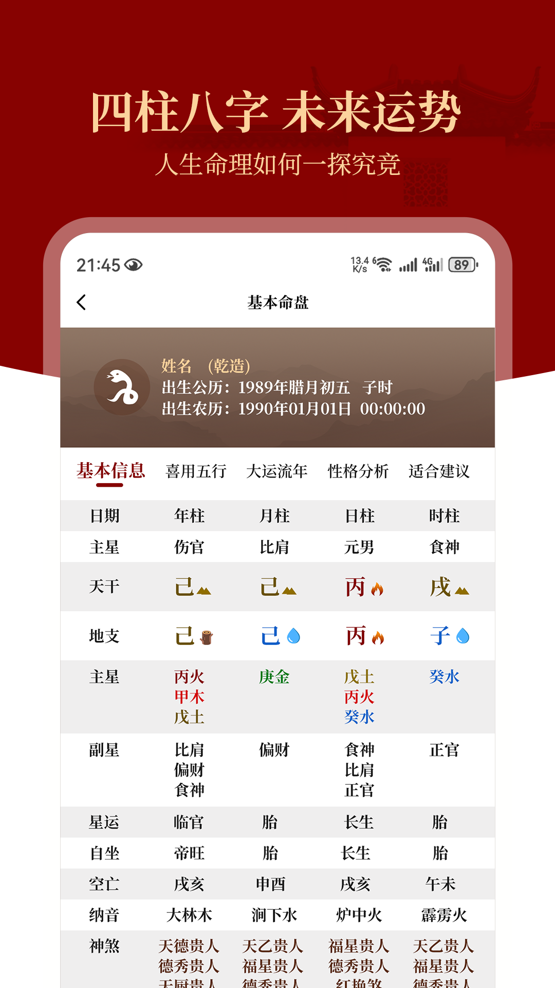 了解自身命理、择吉避凶、起名改名