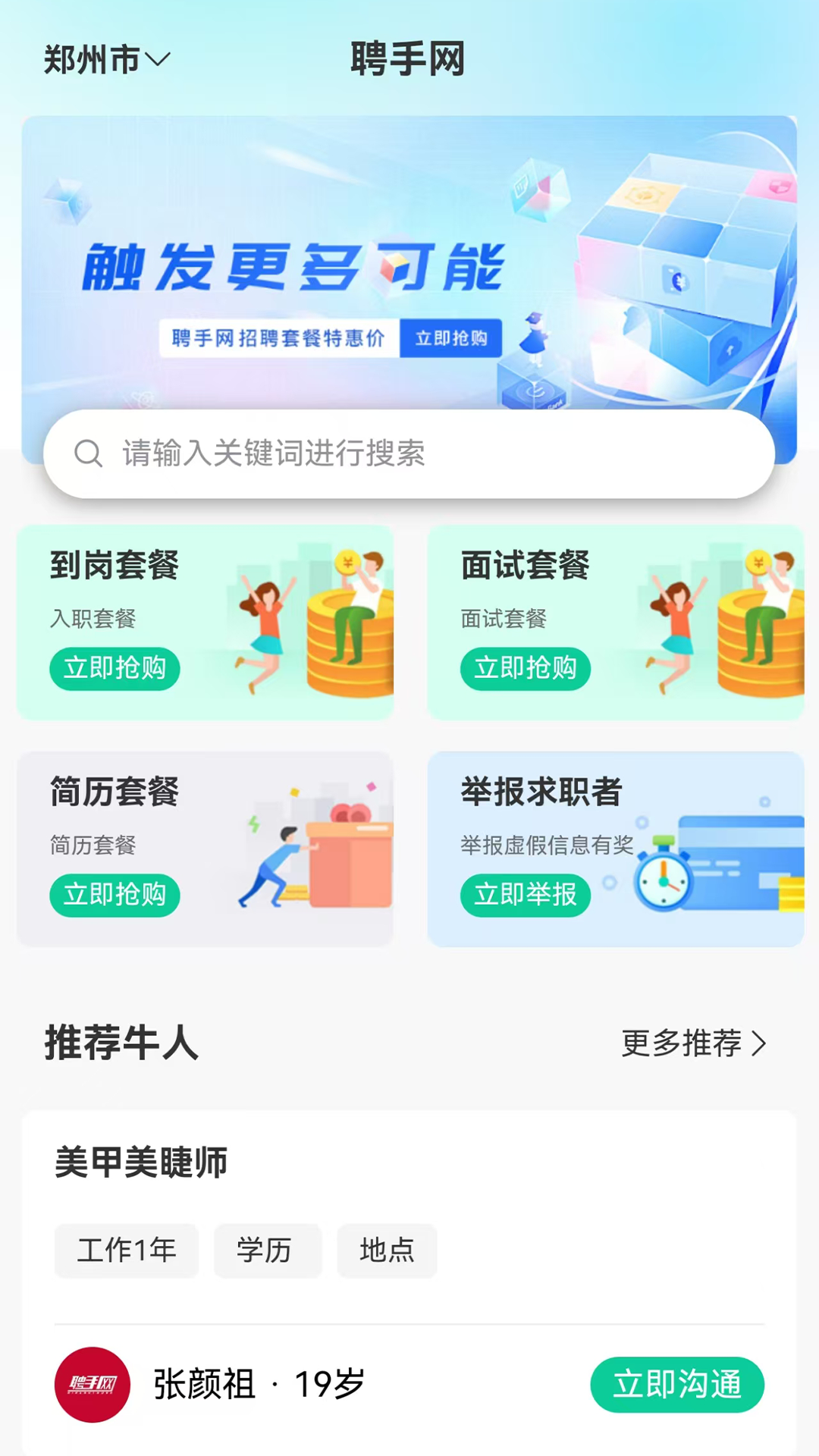 聘手网服务于美容院、SPA会所、美甲店、美发店等美业机构及美业求职者。求职者免费使用,浏览职位、投递简历、在线沟通等功能免费开放。企业发布职位需认证,基础招聘功能免费,部分增值服务可能需要付费。平台信息均经审核,如遇虚假招聘可举报。如遇使用问题,可通过App内在线客服获取帮助。