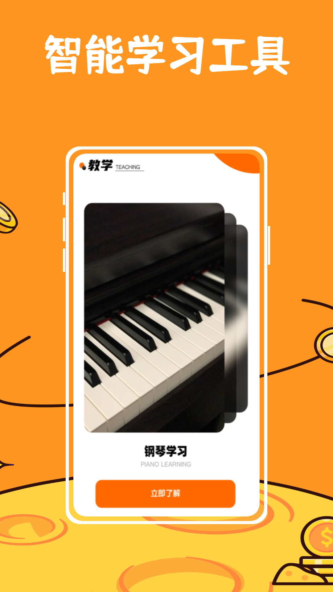 21弦调音,D调、G调、C调。自动识别,弹奏识别弦位。音准指示,偏高偏低。调音建议,松紧方向。调音记录,历史保存。