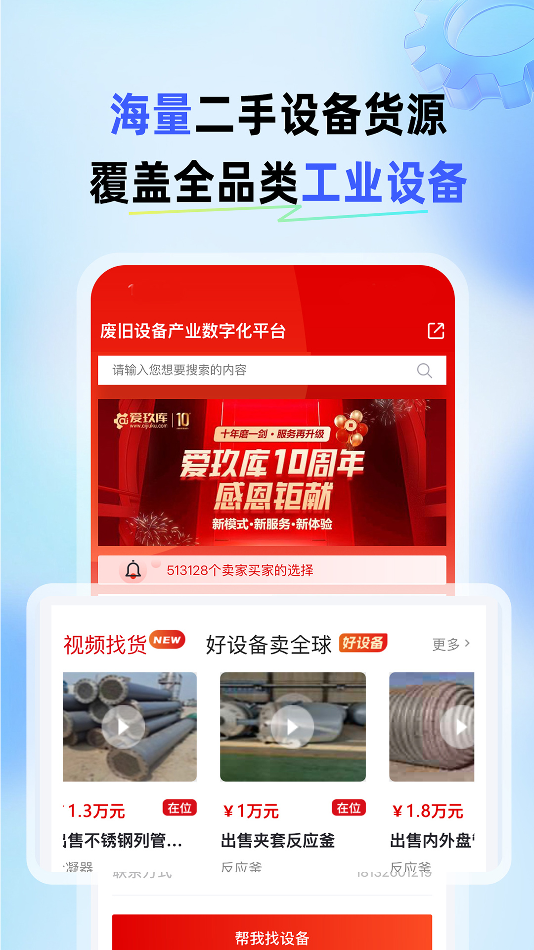 爱玖库服务于工厂企业、设备商、二手设备商及工业用户。用户免费下载使用,设备浏览、资讯查看等基础功能免费开放。交易服务需注册认证。如遇使用问题,可通过App内在线客服获取帮助。