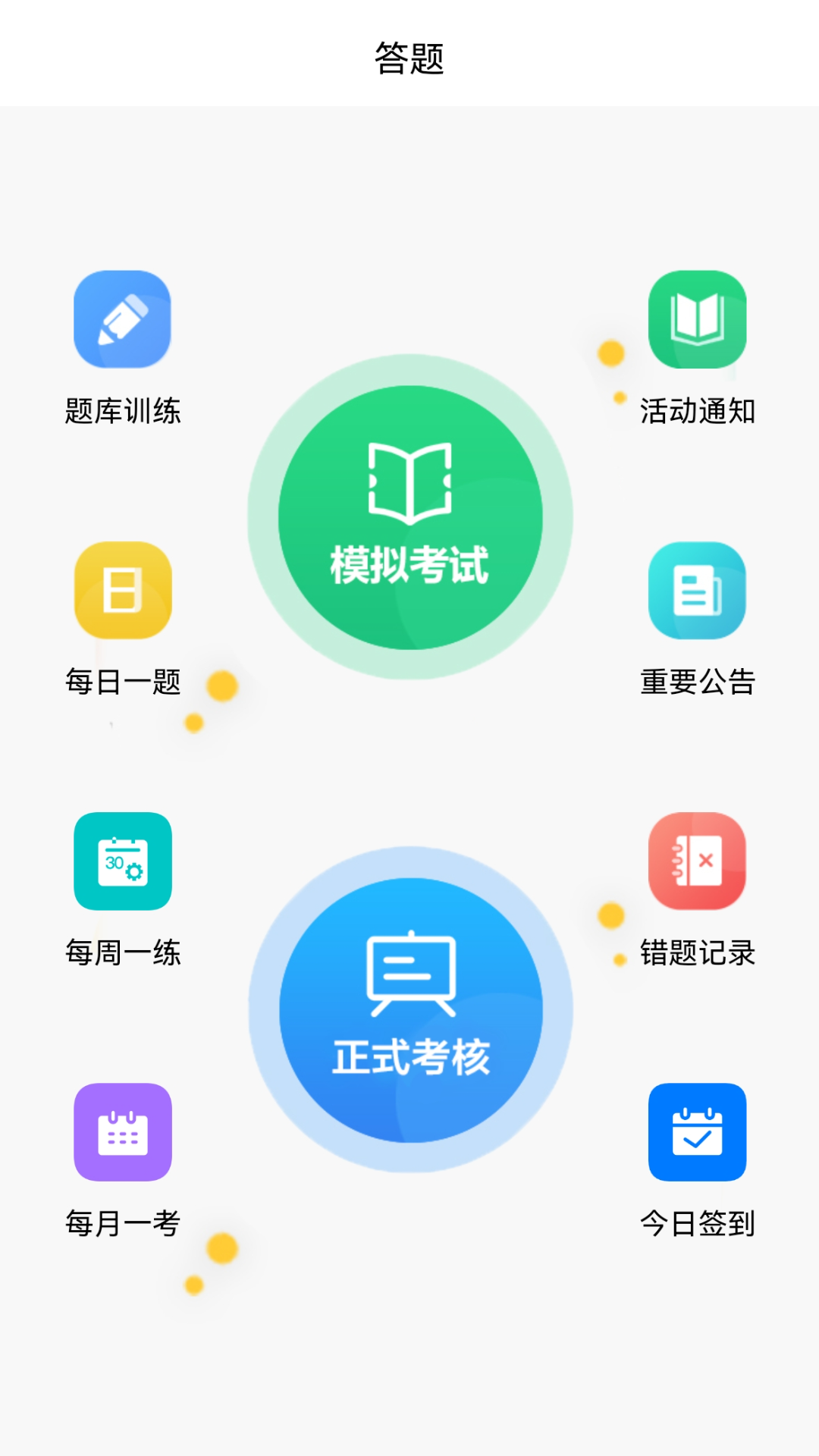 在线考试 提供在线答题功能,提交后系统自动阅卷出分,错题自动收录到错题本方便巩固复习,支持模拟考试和正式考核两种模式。