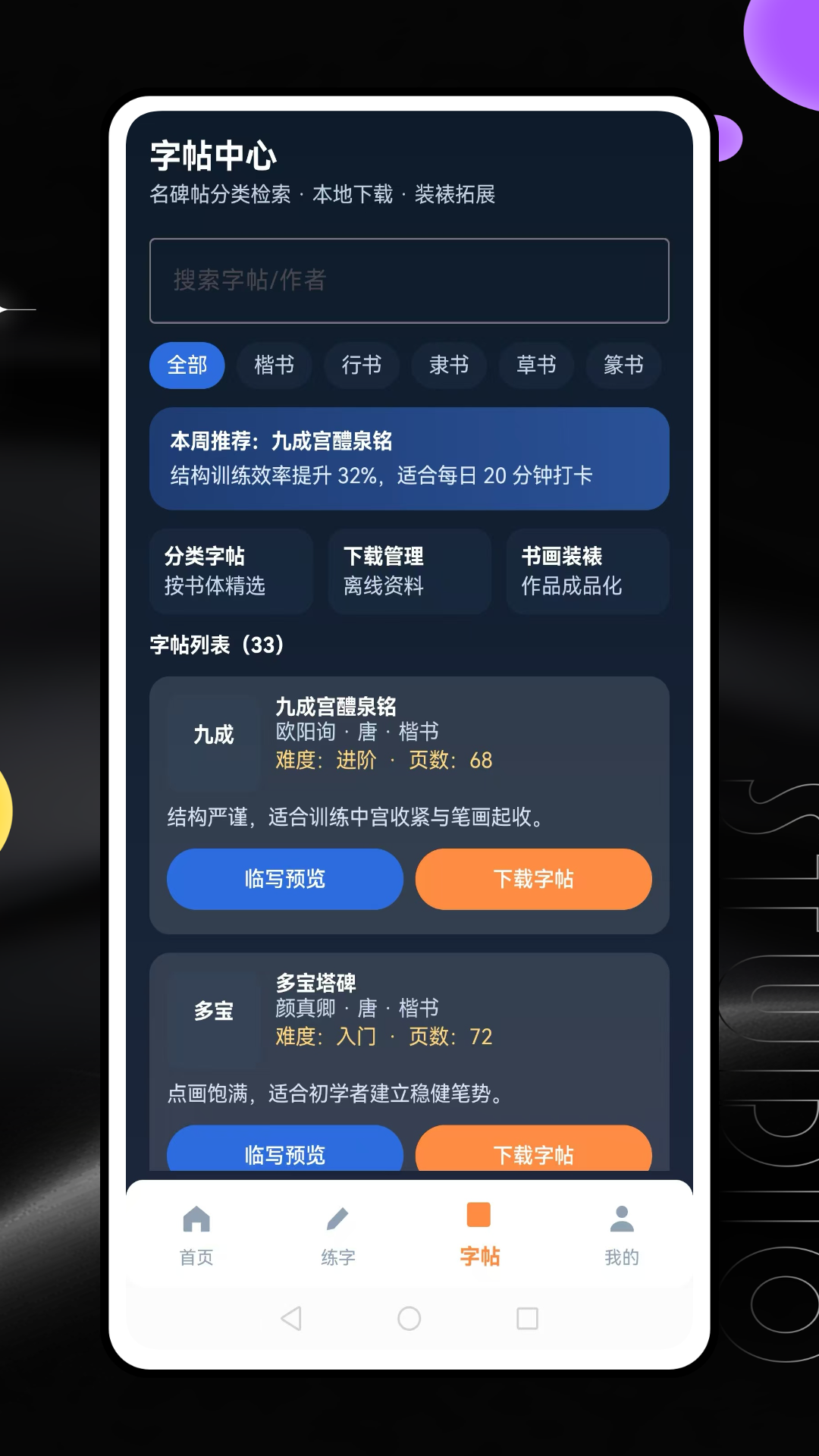 用户可设置每日练字目标和计划,如每天练几个字、练多长时间。系统按计划推送当日练习内容,连续完成打卡可获得成就勋章。练字贵在坚持,练字计划帮助用户养成每日书写的习惯。